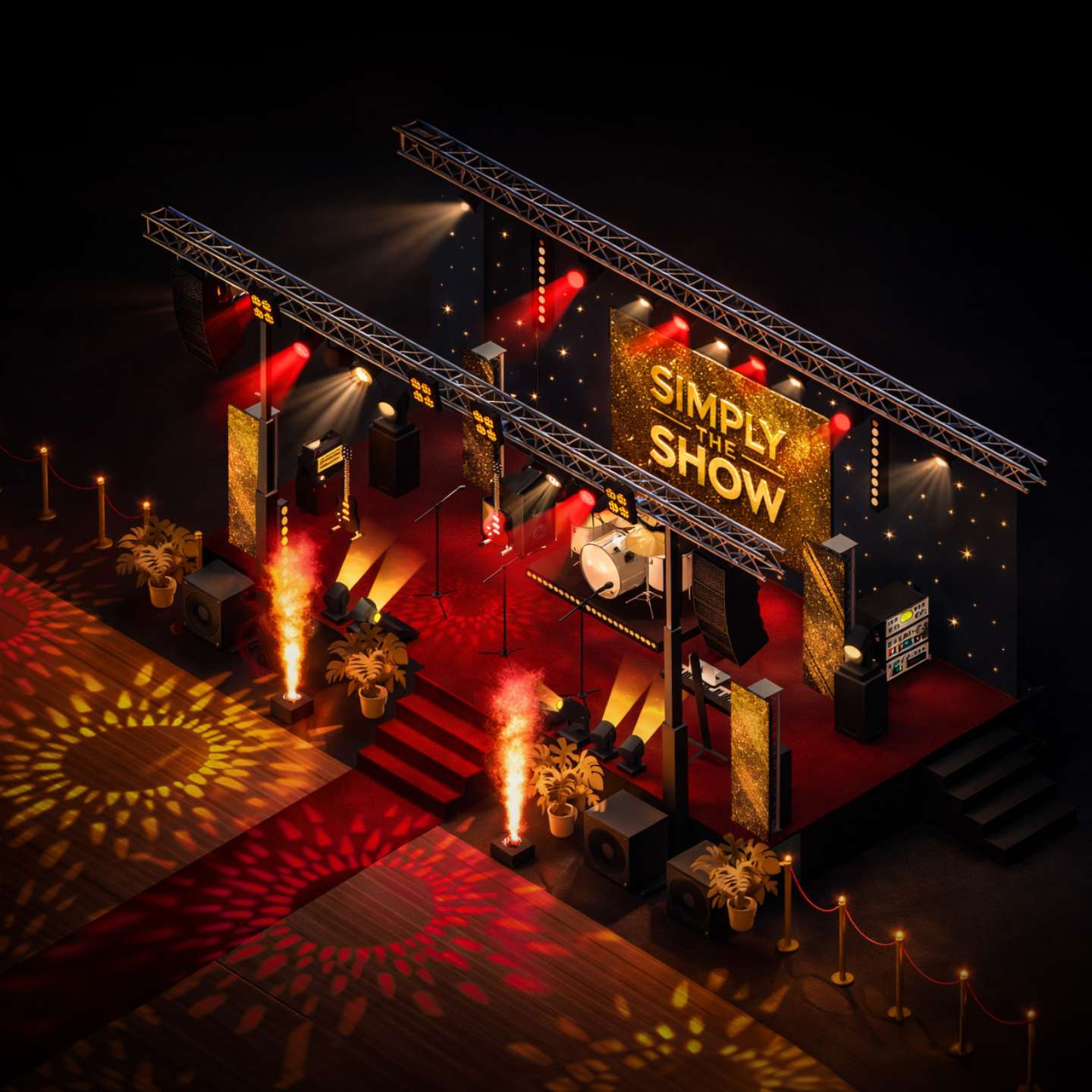 U vystou­pe­ní kape­ly Sim­ply The Show pro­to nikdy nekon­čí­me jen u out­fi­tů, hrubé­ho roze­sta­vě­ní tech­ni­ky a zapnu­tí svě­tel. Ke kaž­dé akci při­stu­pu­je­me jako k cel­ku – ladí­me scé­nu, svě­tel­ný design i LED obsah tak, aby odpo­ví­da­ly téma­tu veče­ra nebo vizu­ál­ní iden­ti­tě klienta.