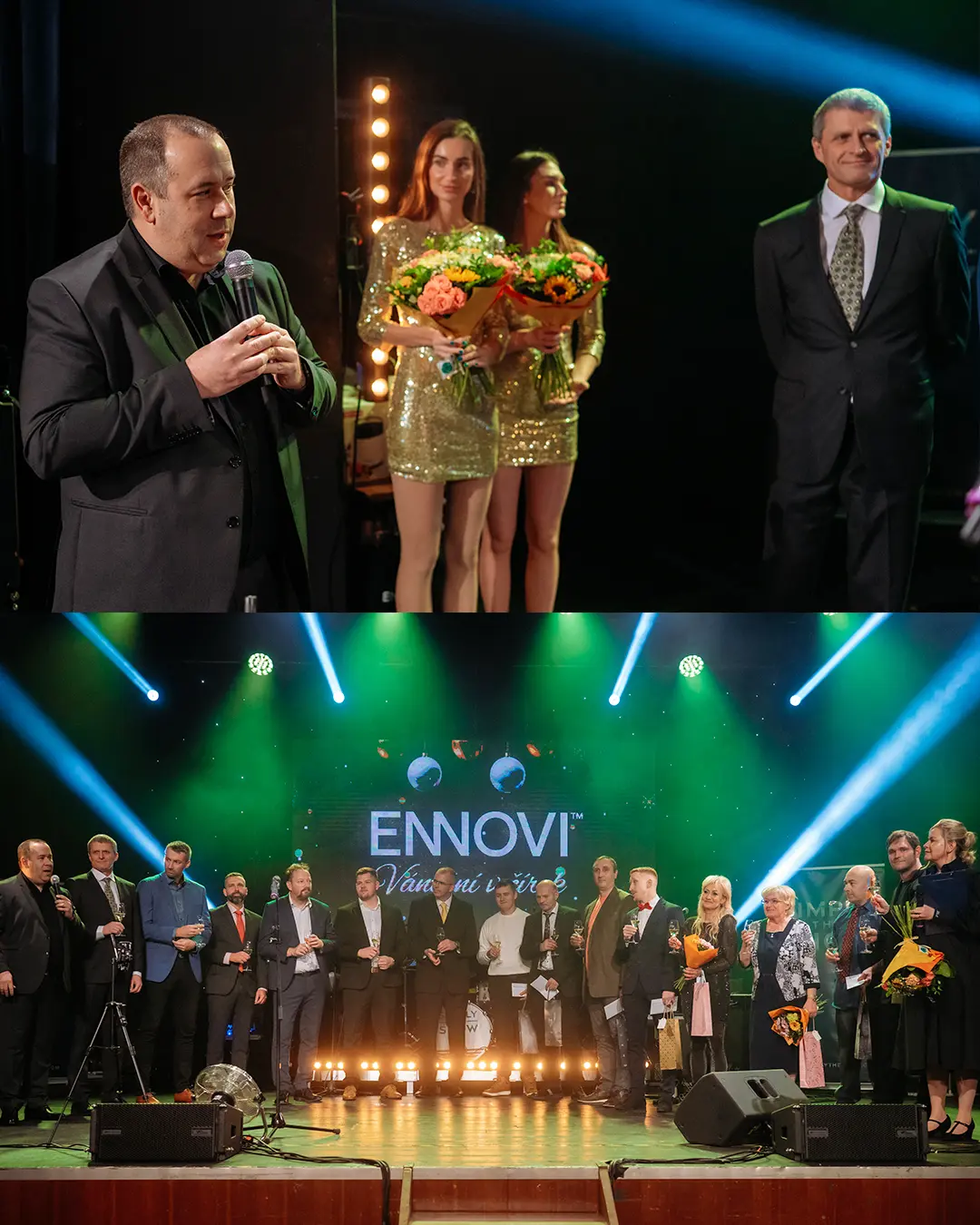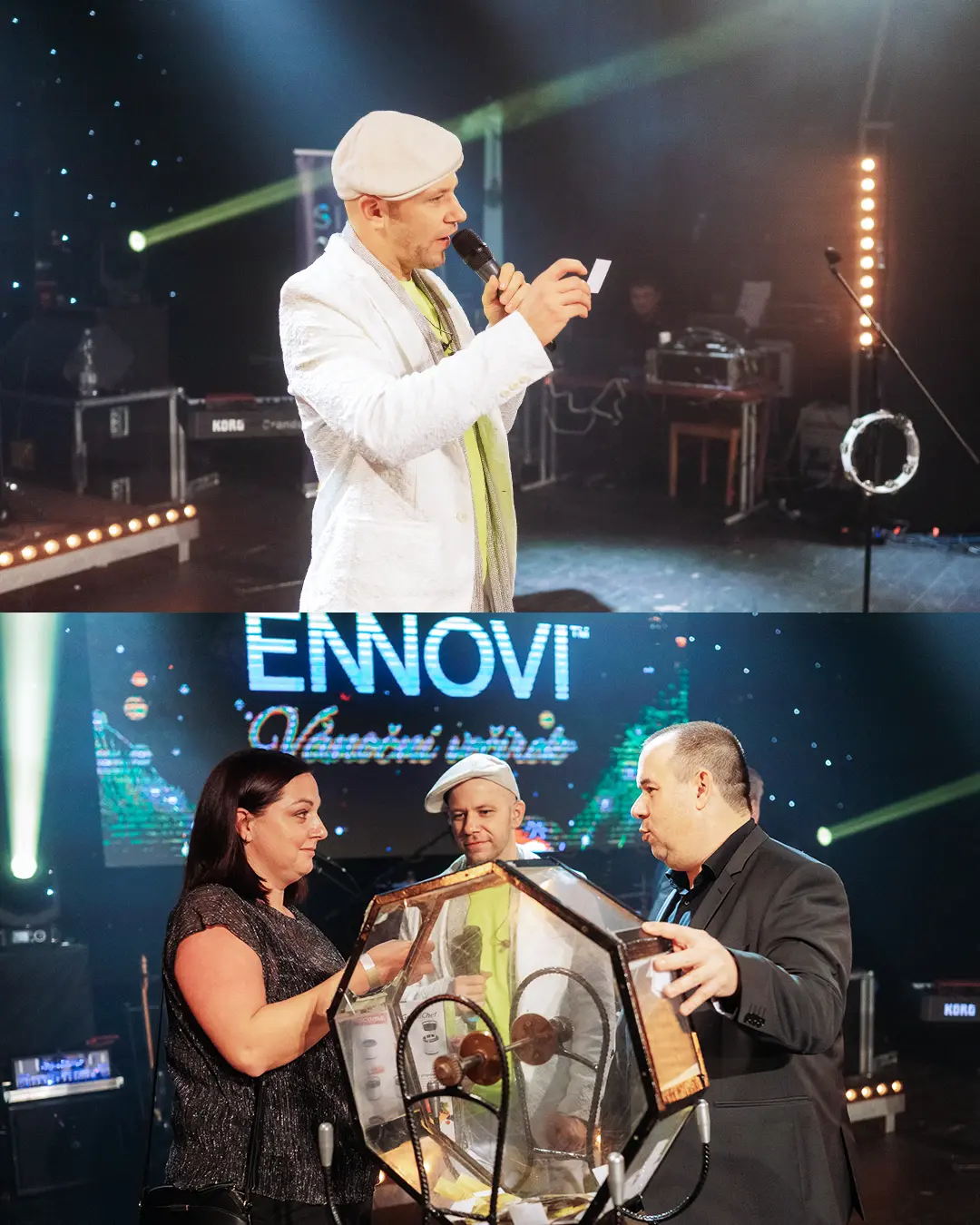 Stejně jako u řady událostí jsme i u zmíněného večírku společnosti ENNOVI zajišťoval nejen hudební produkci a moderování, ale i kompletní technické řešení večera – zvuk, světla a LED obrazovku, jejíž součástí byla i video show synchronizovaná s naší hudební produkcí. Toto spojení hudební show a technického zajištění dlouhodobě nazýváme PREMIUM SHOW a vzniklo přirozeně z praxe: jeden sehraný tým, jeden koncept vyladěný do detailů, snadná komunikace s jediným realizačním týmem i plynulý průběh celé akce.