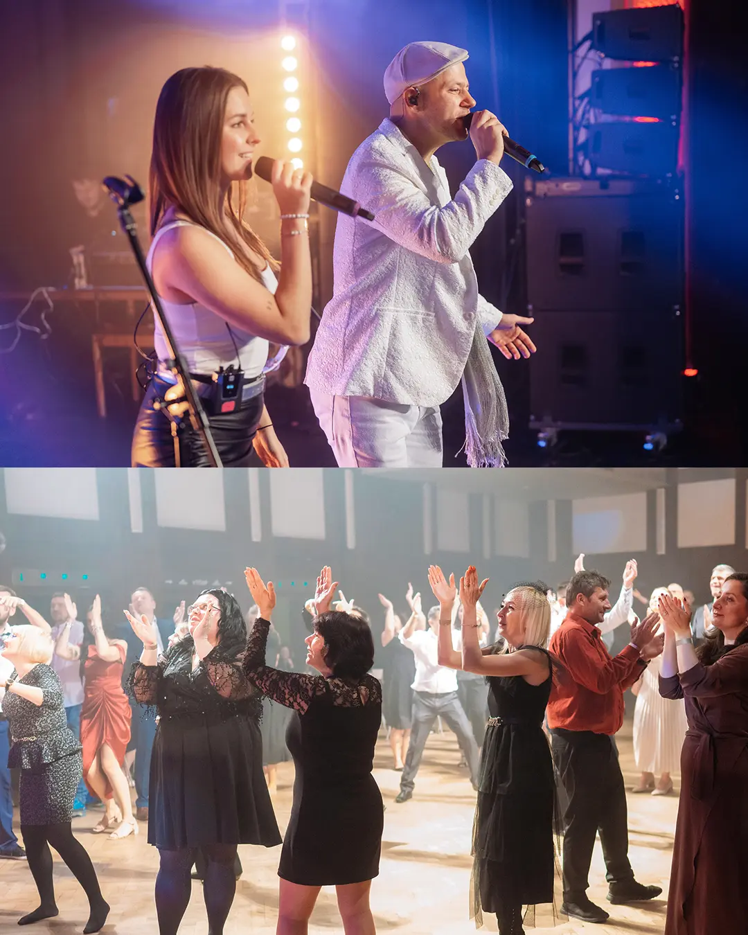 Posledním předvánočním setkáním byl večírek v Písku – v rodném městě dvou z našich členů, kam se se svou show pravidelně vracíme a kde máme za sebou řadu odehraných událostí. Večírek pořádaný v kulturním domě návštěvníkům přinesl nejen bohatou tombolu, ale i významný osobní moment v podobě žádosti o ruku, kterou jsme doplnili moderací i hudebním doprovodem. Děkujeme Kateřině Kudlíkové a Heleně Volfové za hladký průběh akce a za dramaturgický dohled.